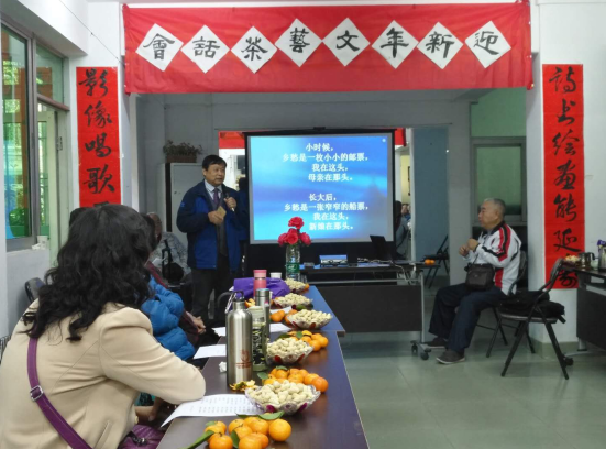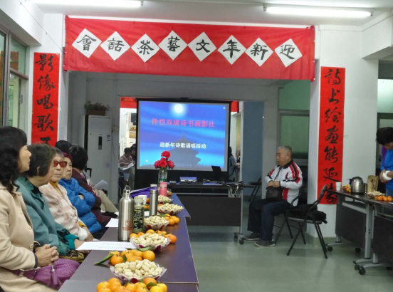 2018年1月10日上午,离退休老同志兴趣小组“诗书画社”在老干活动中心开展迎新年文艺茶话会。在茶话会上,老同志们吟诵自己创作的诗歌,欣赏书画摄影作品。