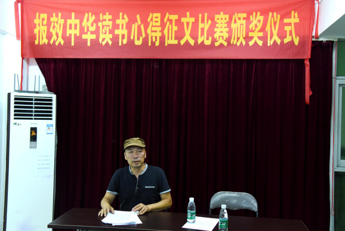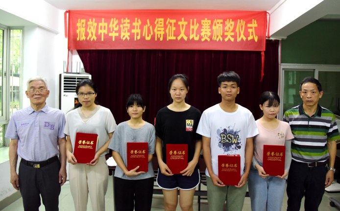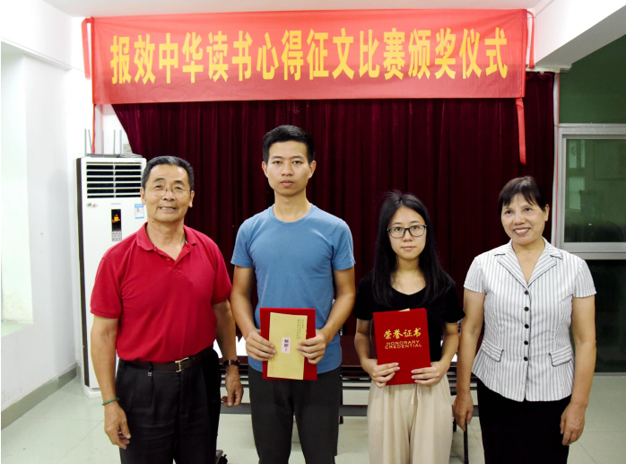 7月5日下午,“报效中华”读书心得征文比赛颁奖仪式在离退休干部工作处会议室顺利举行。学校关工委主任王安利,顺德于民帮扶助学金筹备组负责人、广东省仲恺基金会理事欧阳启明,校关工委常务副主任黄仪凤,副主任吴秀峰、副秘书长余德富及关工委委员中的老同志,离退休工作处、党委宣传部、学生处、广东仲恺教育基金会代表同志出席本次活动。本次征文获奖同学,顺德于民帮扶助学金受助同学参加本次活动。颁奖仪式由王安利主持。