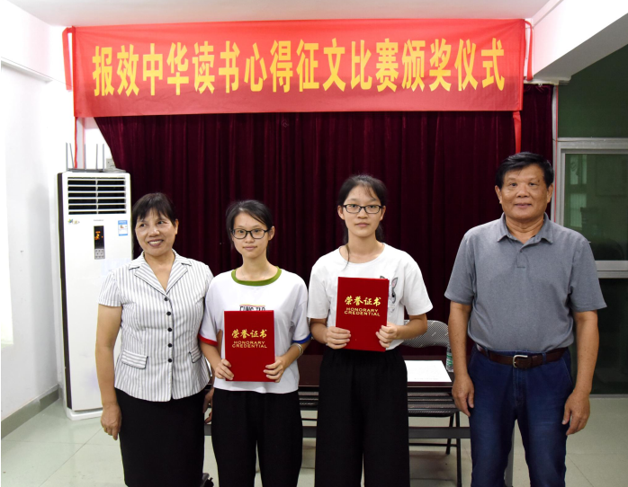 仪式上,王安利宣读征文获奖名单并为获得一等奖的甄佩源、林树彬同学颁奖。黄仪凤、吴秀峰为获得二等奖的杨钰莹、黄华丹同学颁奖。李志鸿、余德富为获得三等奖的黄群娇、方晓琦、谢金湖、俞梅娟、吴丽霞同学颁奖。