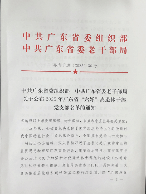 2025年广东省“六好”离退休干部党支部评选结果出炉,我校退休干部第五党支部榜上有名(全省共120个党支部入选)。