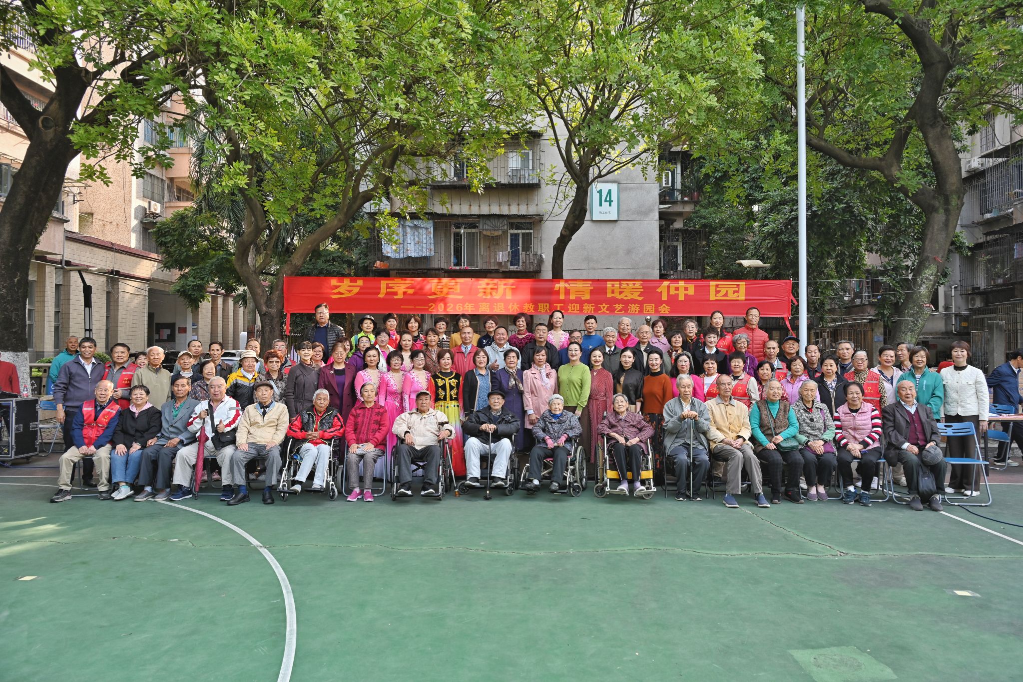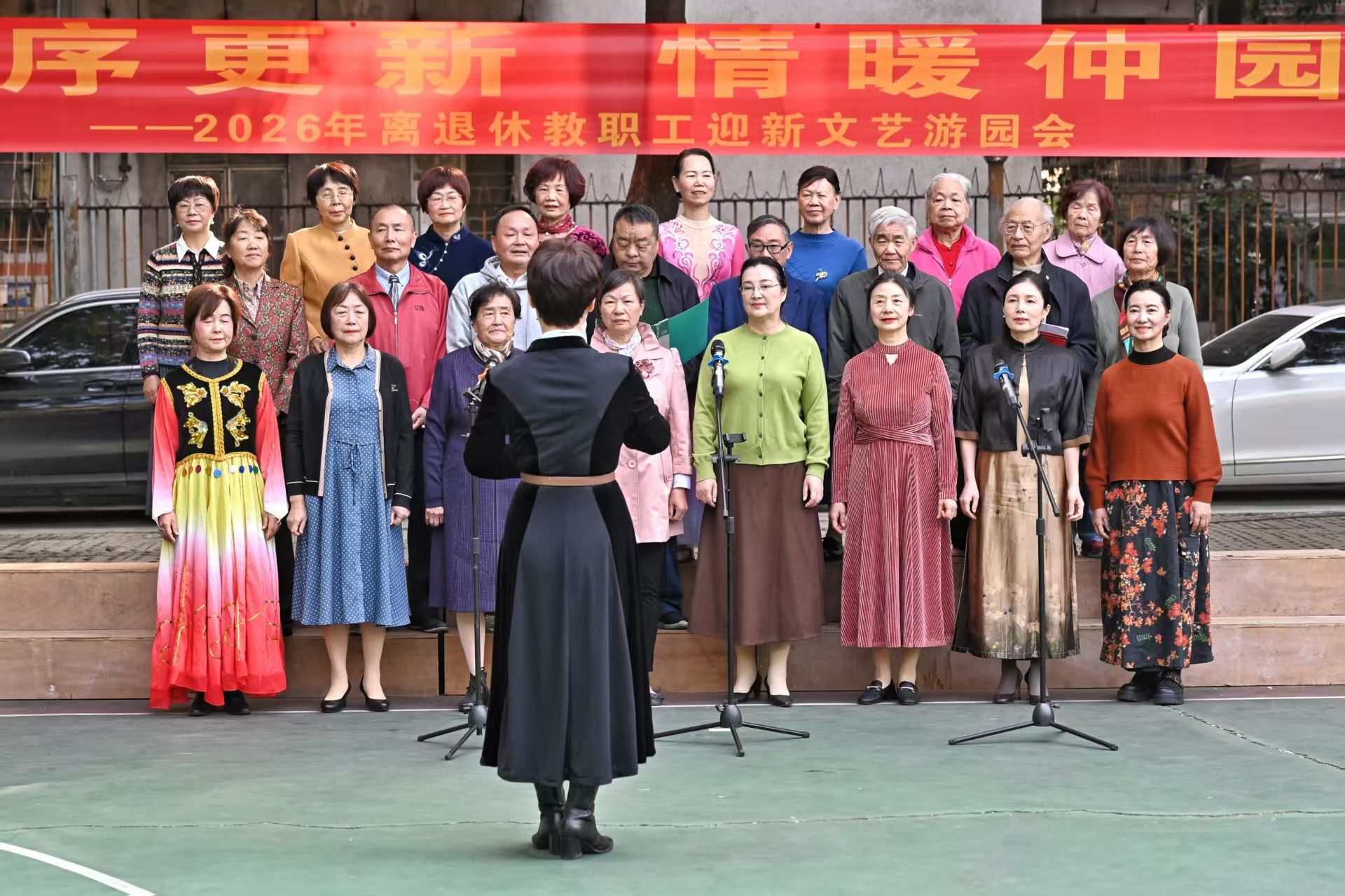 12月30日上午9时,海珠校区北区篮球场暖意融融、欢歌阵阵,离退休教职工“岁序更新 情暖仲园”迎新年文艺游园会如期举行。200余名老同志欢聚一堂,在精彩的文艺表演与趣味游园活动中,共同迎接2026年新年的到来。