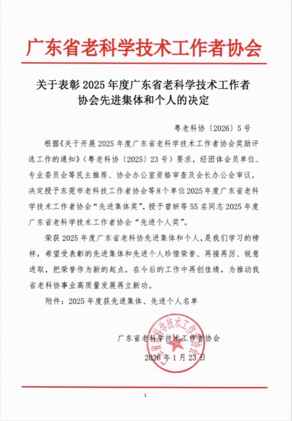此次获评“先进集体”,是仲恺老科协继2024年获中国老科协“科学技术奖”之后的又一突破。面向2026,仲恺老科协将紧扣“十五五”开局和粤港澳大湾区国际科技创新中心建设,持续深化“银龄行动”,在决策咨询、乡村振兴、科学普及、助企创新等领域再立新功,为广东在推进中国式现代化建设中“走在前列”贡献仲恺银龄智慧与力量!